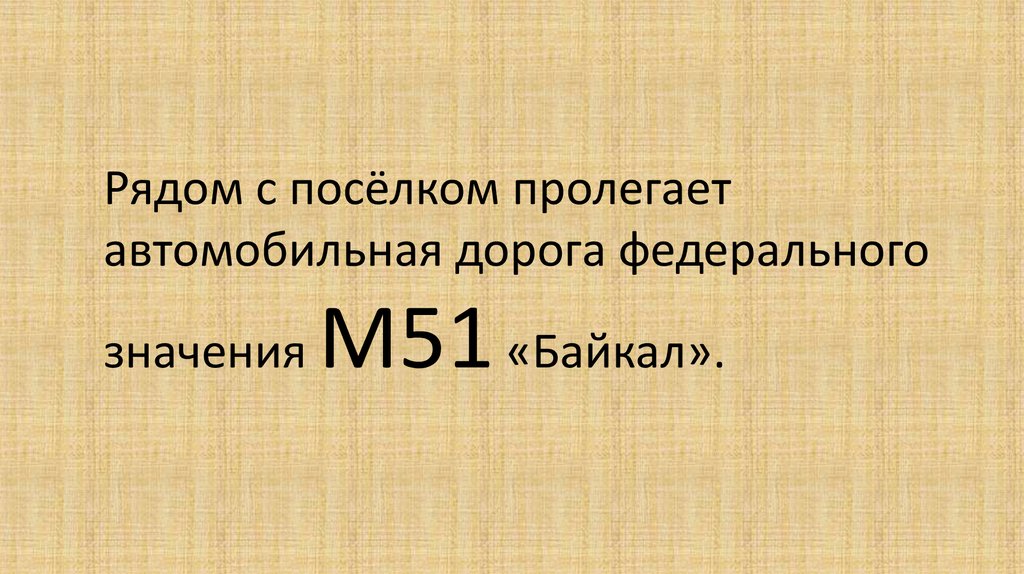Рядом с посёлком пролегаетавтомобильная дорога федерального