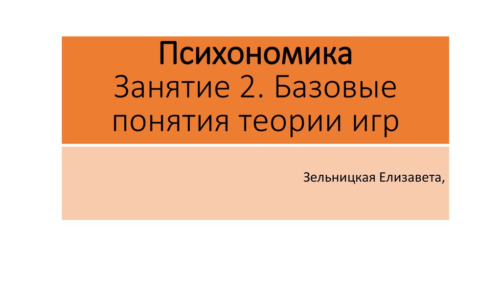 ПсихономикаЗанятие 2. Базовые
