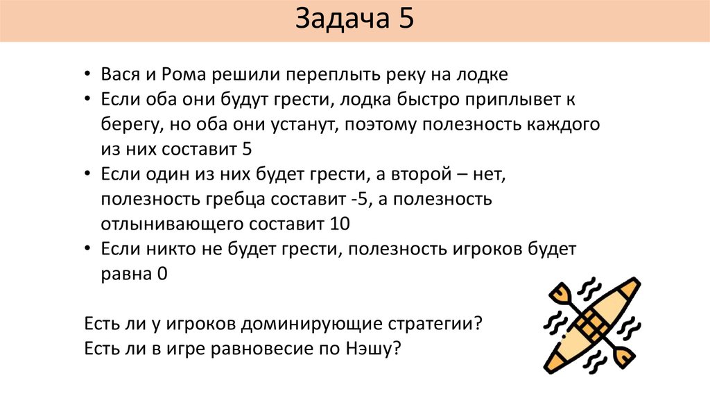 • Если никто не будет грести, полезность игроков будет