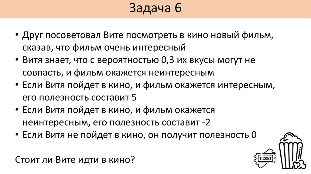 Задача 6• Друг посоветовал Вите посмотреть в кино новый фильм,