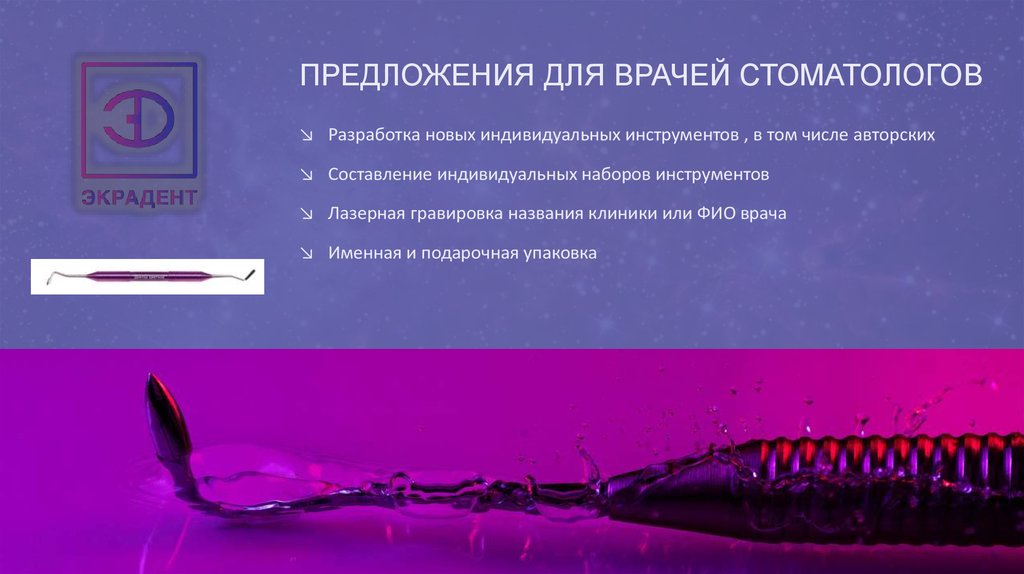 ПРЕДЛОЖЕНИЯ ДЛЯ ВРАЧЕЙ СТОМАТОЛОГОВ↘ Разработка новых индивидуальных инструментов , в том числе авторских