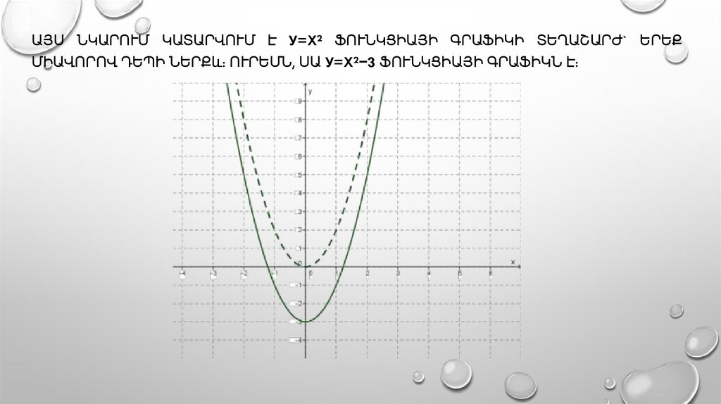 ԱՅՍ ՆԿԱՐՈՒՄ ԿԱՏԱՐՎՈՒՄ Է У=X² ՖՈՒՆԿՑԻԱՅԻ ԳՐԱՖԻԿԻ ՏԵՂԱՇԱՐԺ` ԵՐԵՔՄԻԱՎՈՐՈՎ ԴԵՊԻ ՆԵՐՔև: ՈՒՐԵՄՆ, ՍԱ У=X²−3 ՖՈՒՆԿՑԻԱՅԻ ԳՐԱՖԻԿՆ Է: