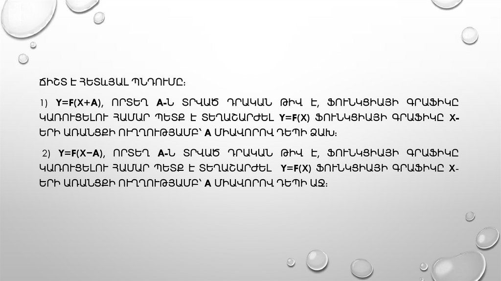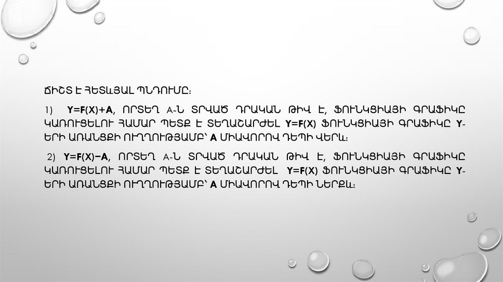 ՃԻՇՏ Է ՀԵՏևՅԱԼ ՊՆԴՈՒՄԸ:1) Y=F(X)+A, ՈՐՏԵՂ A-Ն ՏՐՎԱԾ ԴՐԱԿԱՆ ԹԻՎ Է, ՖՈՒՆԿՑԻԱՅԻ ԳՐԱՖԻԿԸ