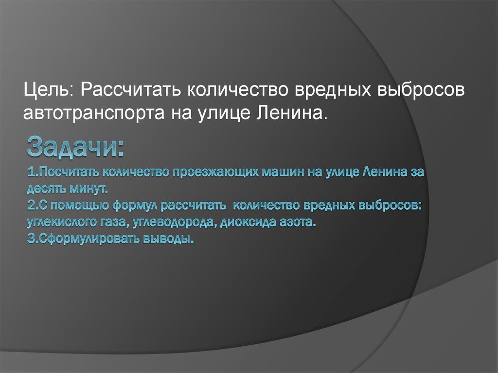 Цель: Рассчитать количество вредных выбросовавтотранспорта на улице Ленина.