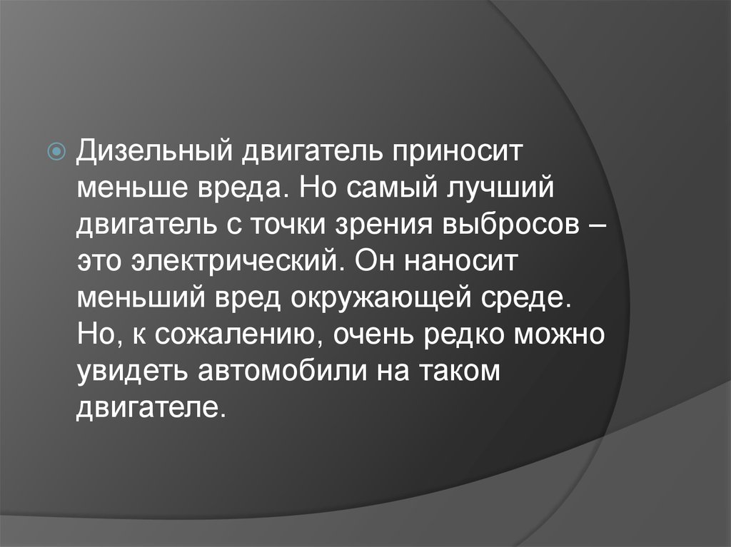 Дизельный двигатель приноситменьше вреда. Но самый лучший