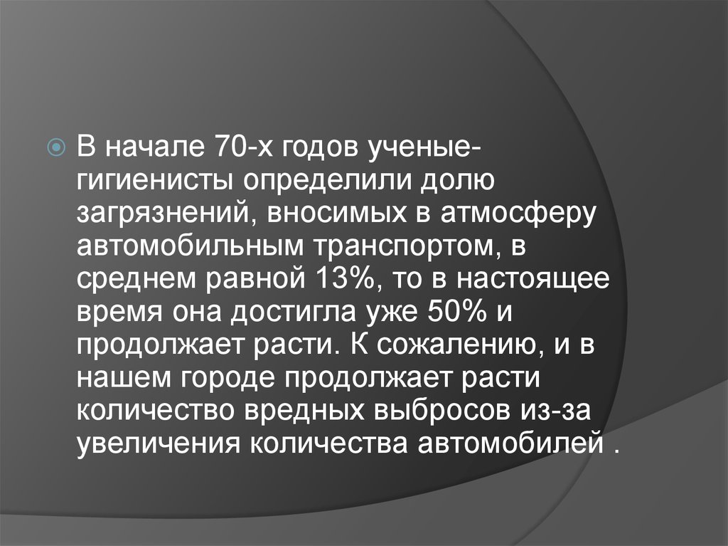 В начале 70-х годов ученыегигиенисты определили долюзагрязнений, вносимых в атмосферу