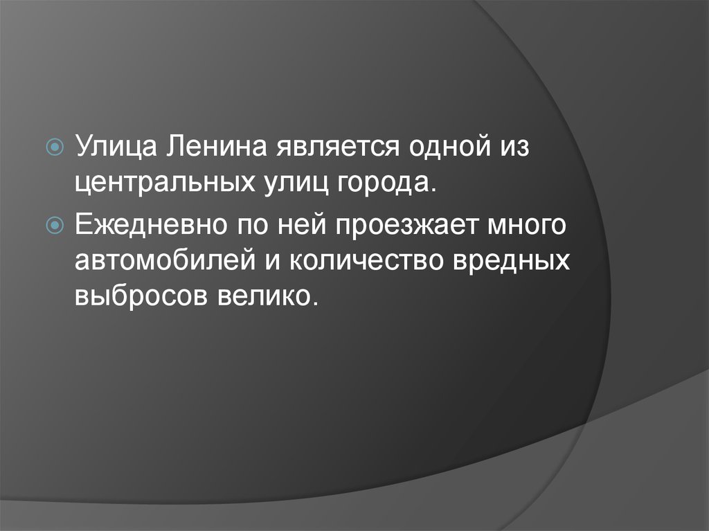 Тема: Исследование загрязнения воздухагородским транспортом на улице Ленина.