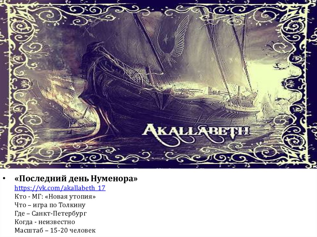 • «Последний день Нуменора»https://vk.com/akallabeth_17