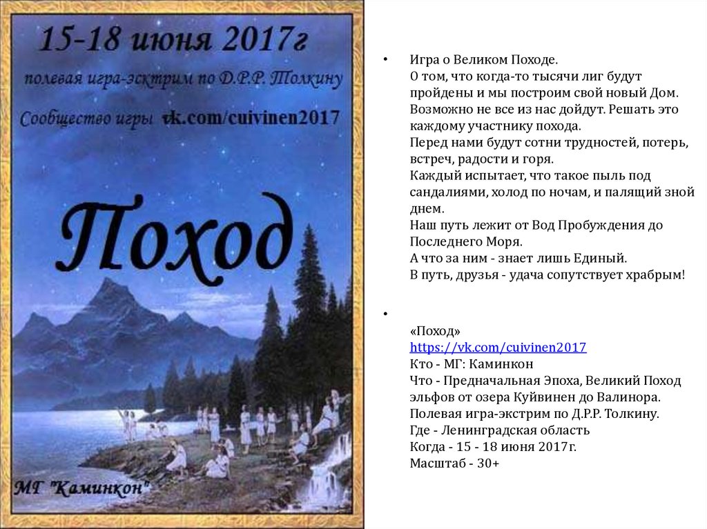 Календарь ролевых полевых игр по Дж.Р.Р. Толкиену