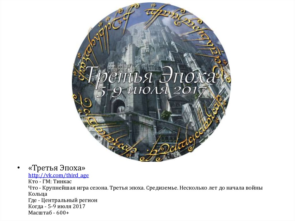 Что - Крупнейшая игра сезона. Третья эпоха. Средиземье. Несколько лет до начала войны