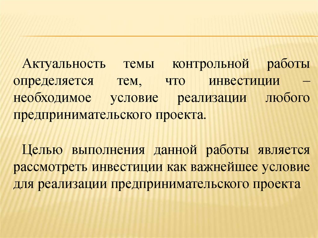 Инвестиции – важное условие реализации любогопредпринимательского проекта. Обычно они