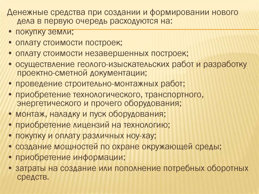 Денежные средства при создании и формировании новогодела в первую очередь расходуются на: