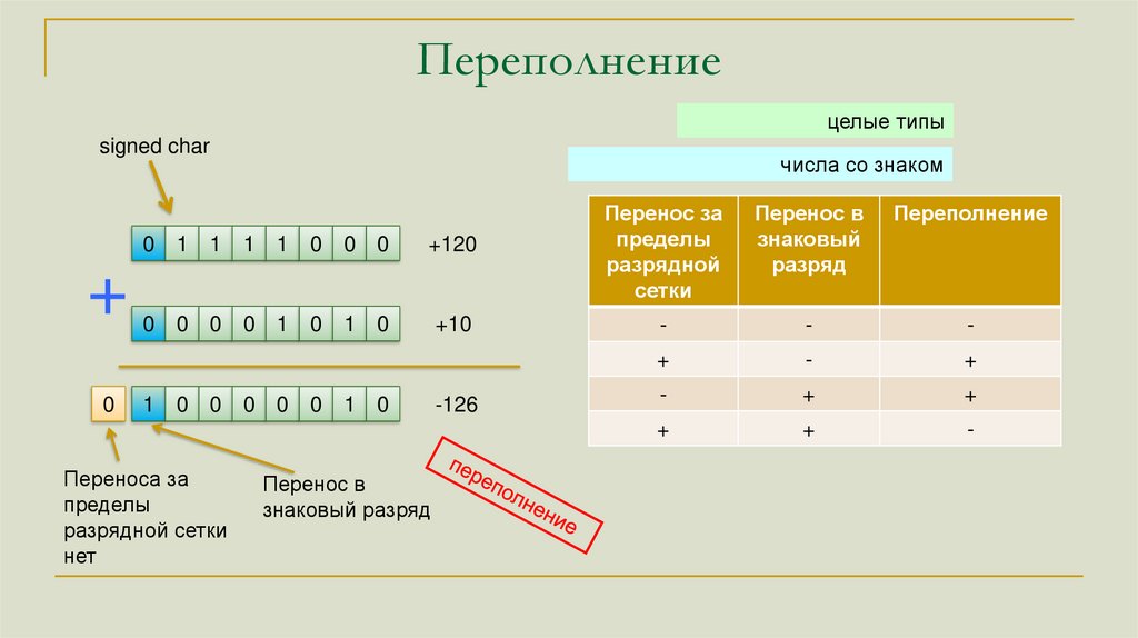 ПереполнениеЗнаковые и беззнаковые типы