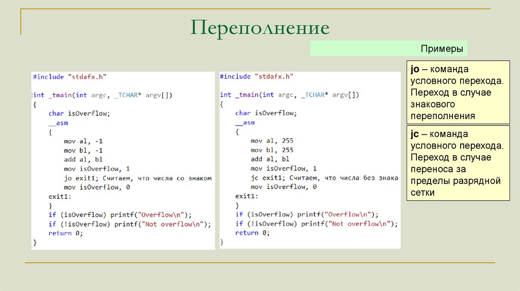 ПереполнениеПримеры