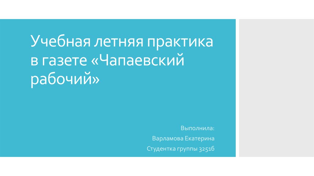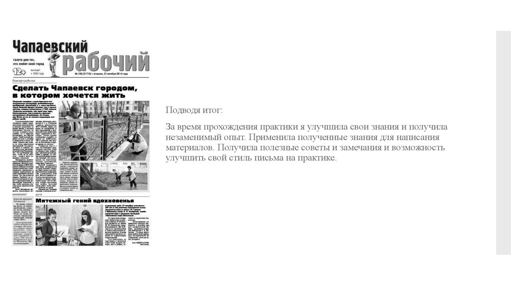 1. Учебная летняя практика в газете «Чапаевский рабочий»