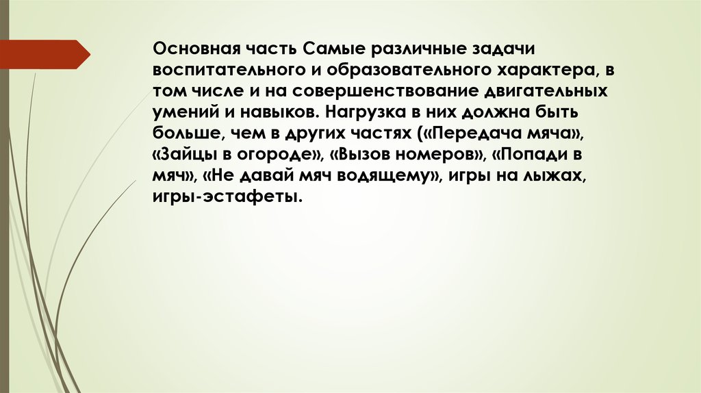 Основная часть Самые различные задачивоспитательного и образовательного характера, в