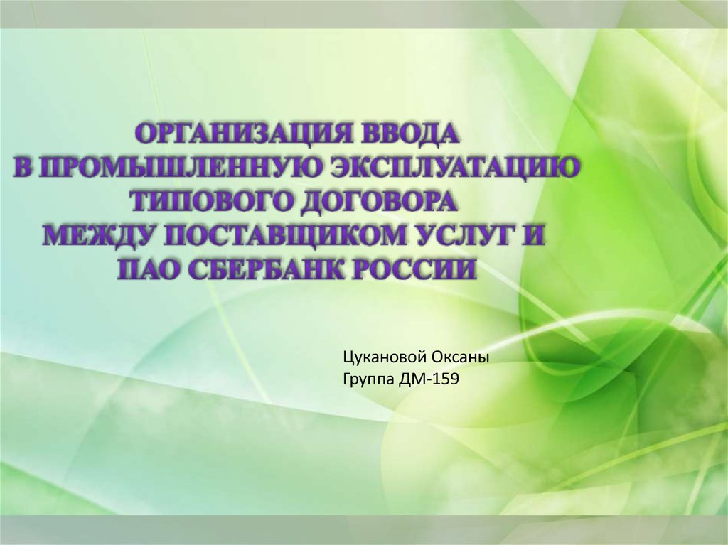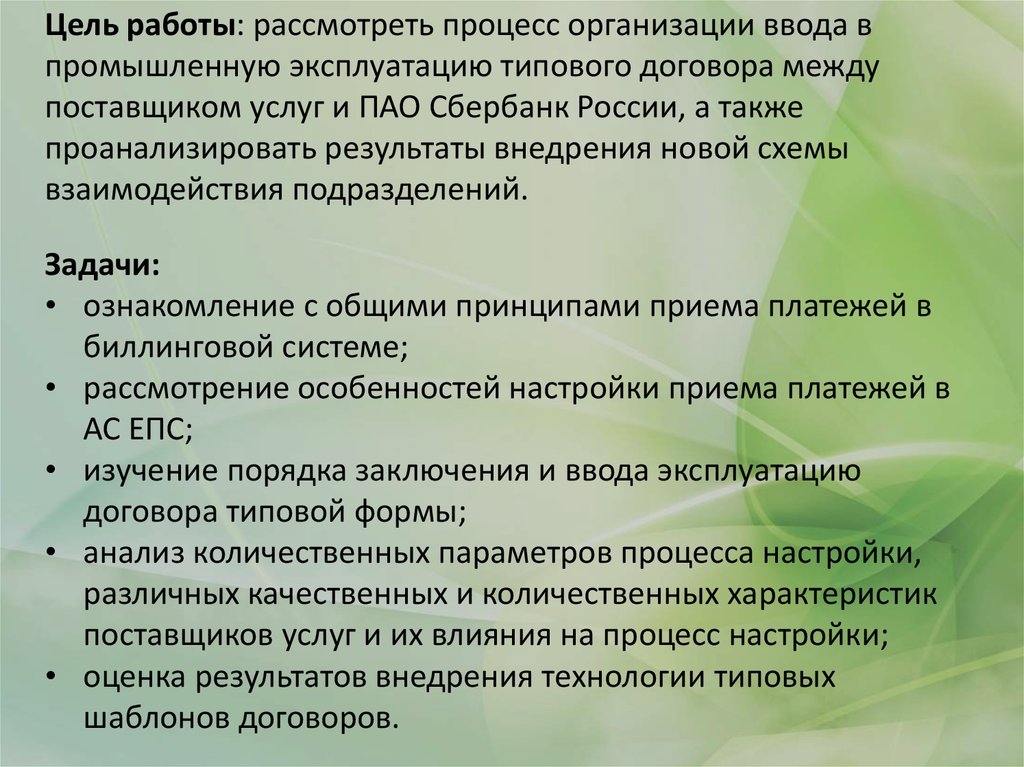 процесс организации ввода в промышленную эксплуатацию типового договора между поставщиком услуг и ПАО Сбербанк России