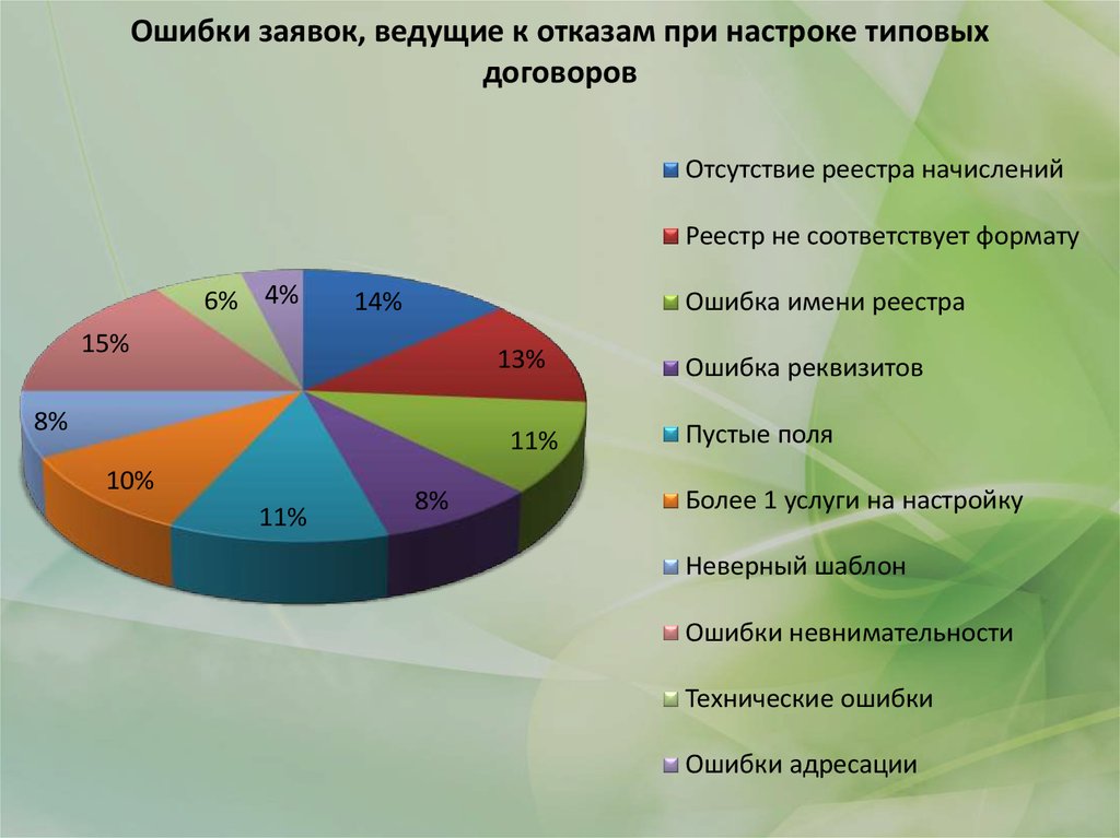 Ошибки заявок, ведущие к отказам при настроке типовыхдоговоров