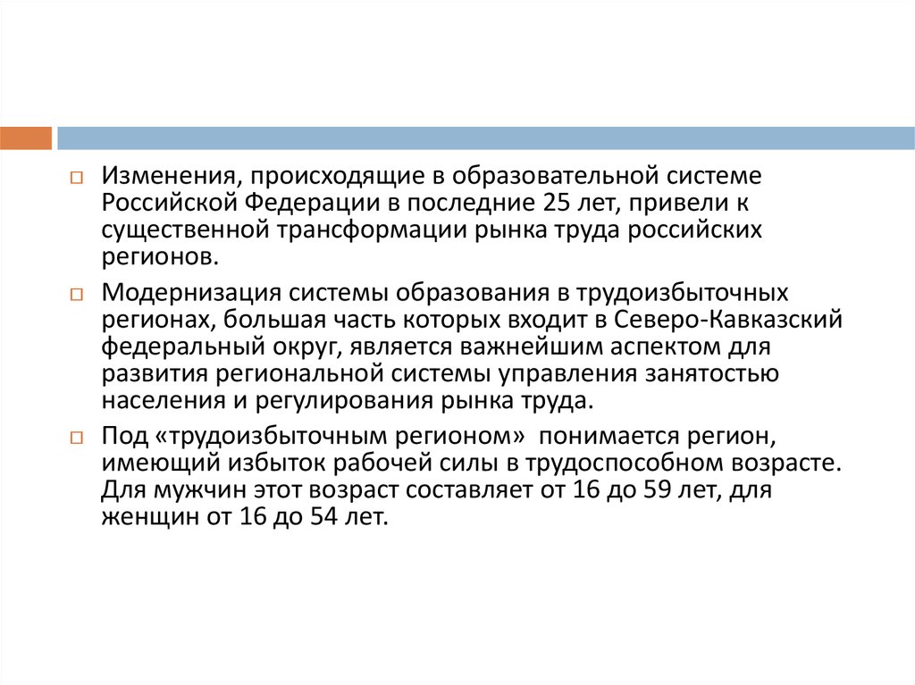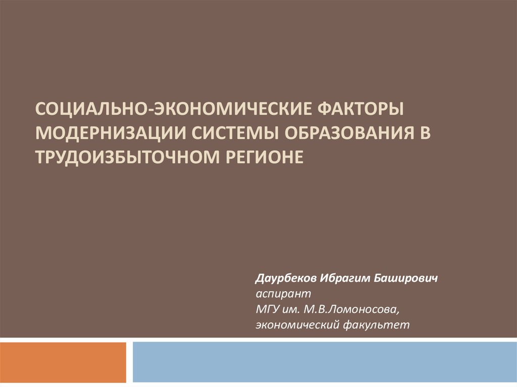 1. Социально-экономические факторы модернизации системы образования в трудоизбыточном регионе