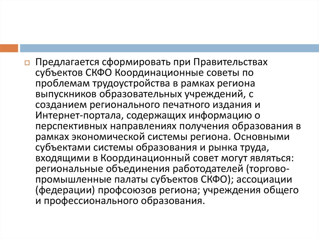 региональные объединения работодателей (торговопромышленные палаты субъектов СКФО); ассоциации