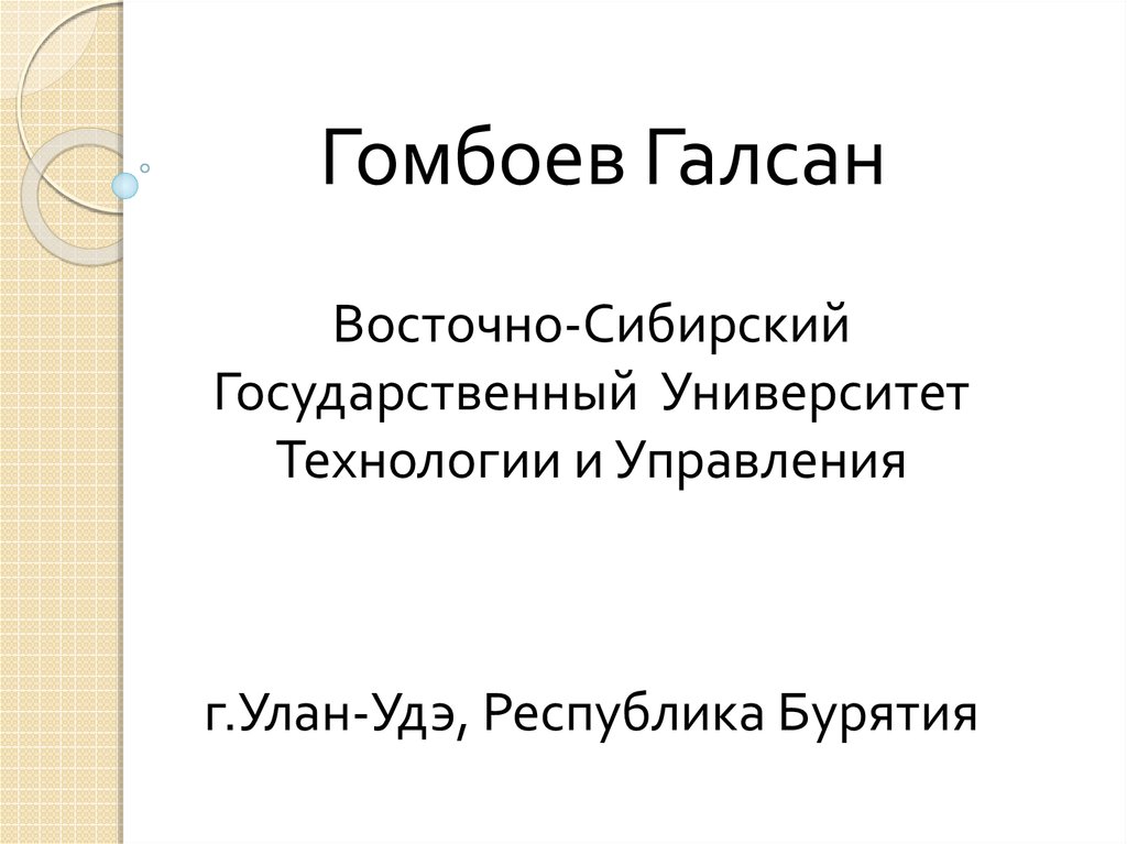 Восточно-СибирскийГосударственный Университет