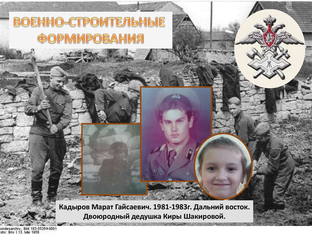 Кадыров Марат Гайсаевич. 1981-1983г. Дальний восток.Двоюродный дедушка Киры Шакировой.