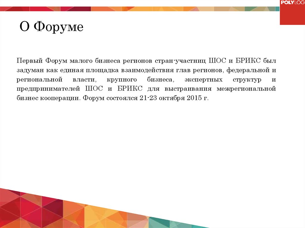 О ФорумеПервый Форум малого бизнеса регионов стран-участниц ШОС и БРИКС был