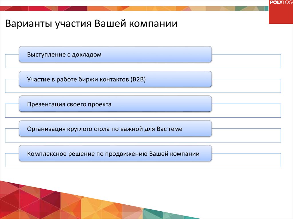 Варианты участия Вашей компанииВыступление с докладом