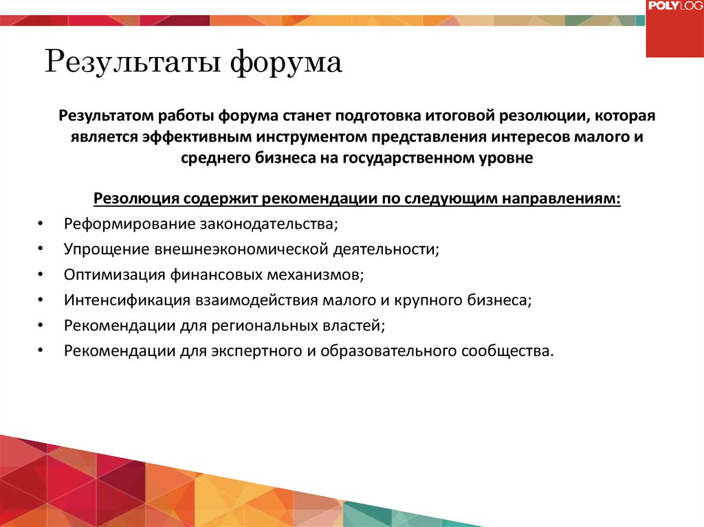 Результаты форумаРезультатом работы форума станет подготовка итоговой резолюции, которая