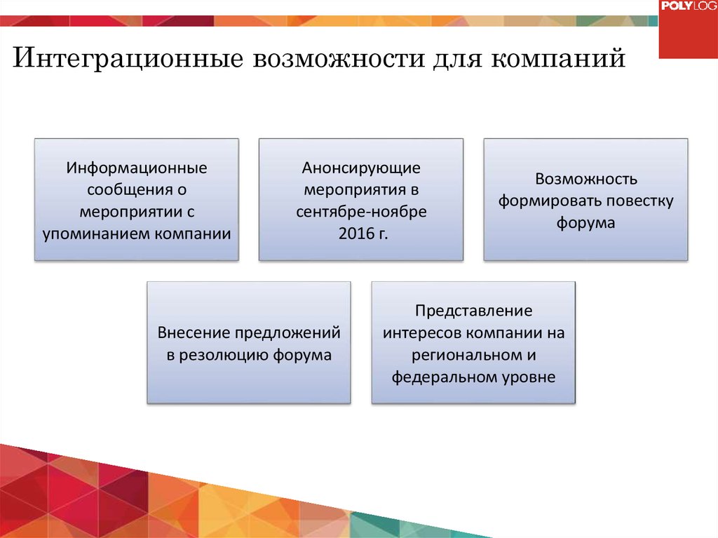 Интеграционные возможности для компанийИнформационные