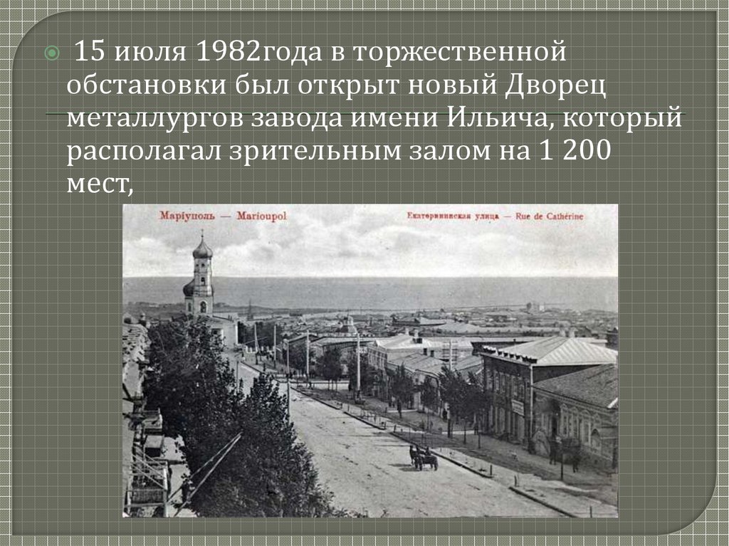 15 июля 1982года в торжественнойобстановки был открыт новый Дворец