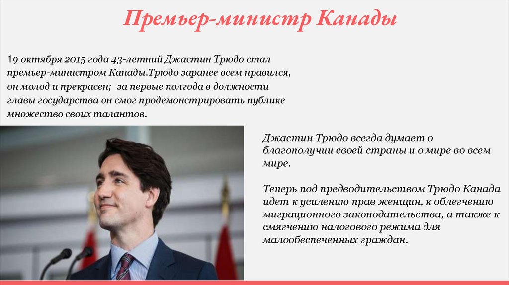 премьер-министром Канады.Трюдо заранее всем нравился,