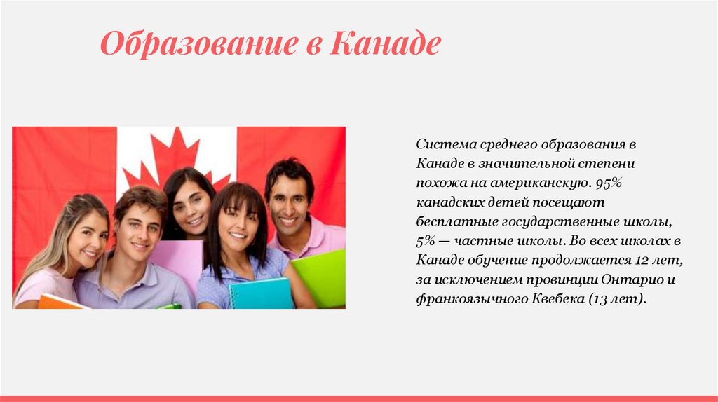 Канаде обучение продолжается 12 лет,