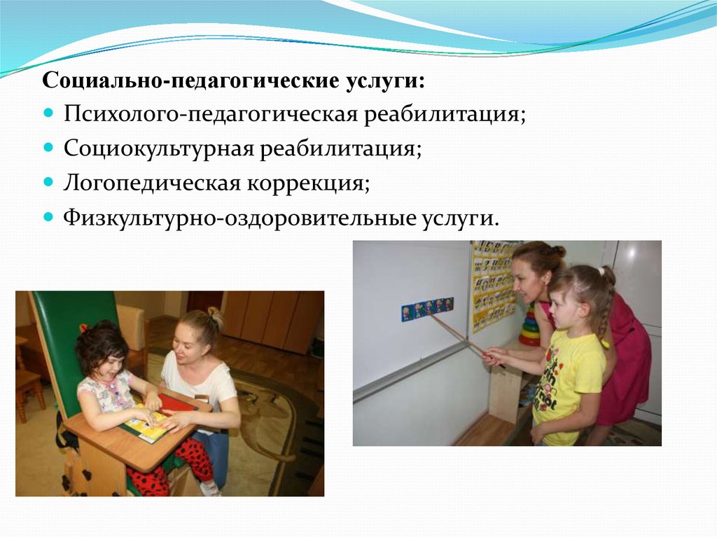 Социально-педагогические услуги:Психолого-педагогическая реабилитация;
