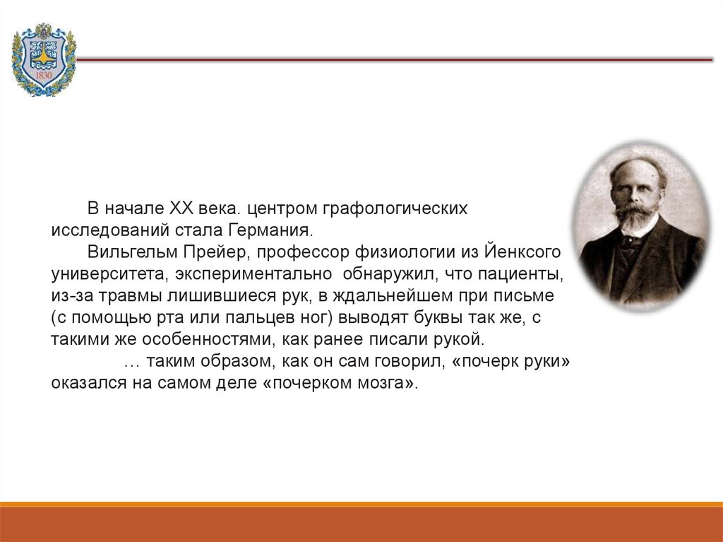 Первое документально зафиксированное исследованиесвязи особенностей почерка и проявлений личности,