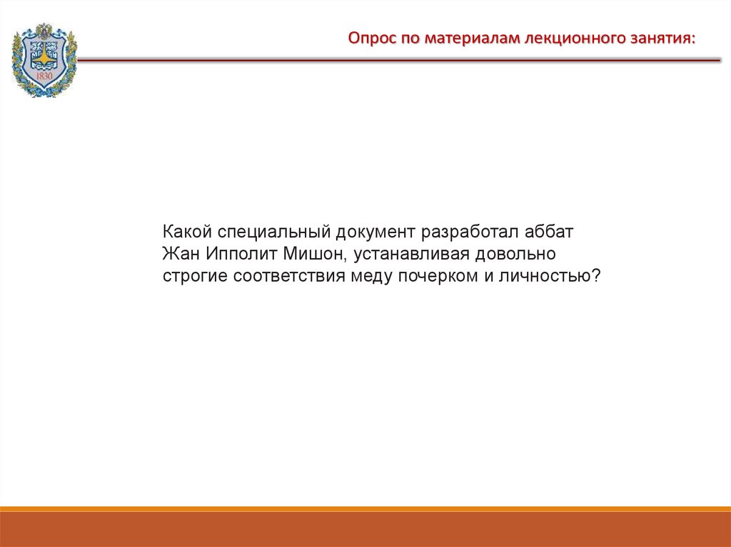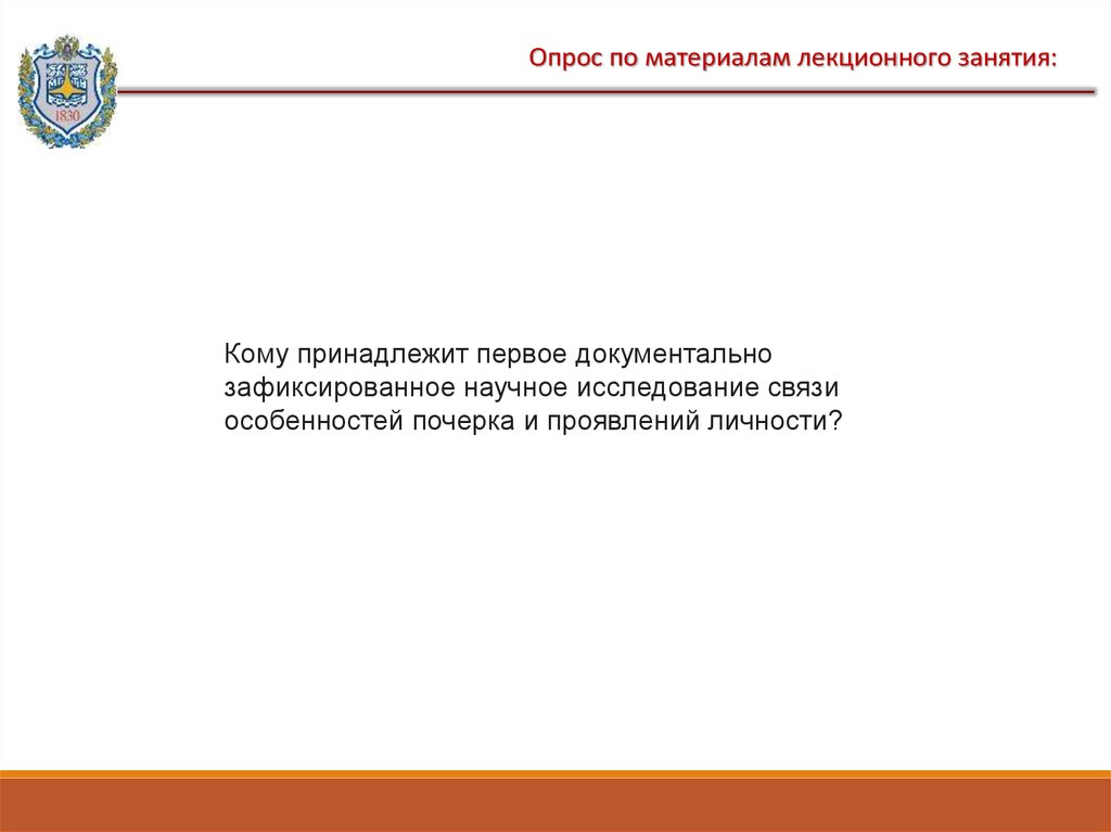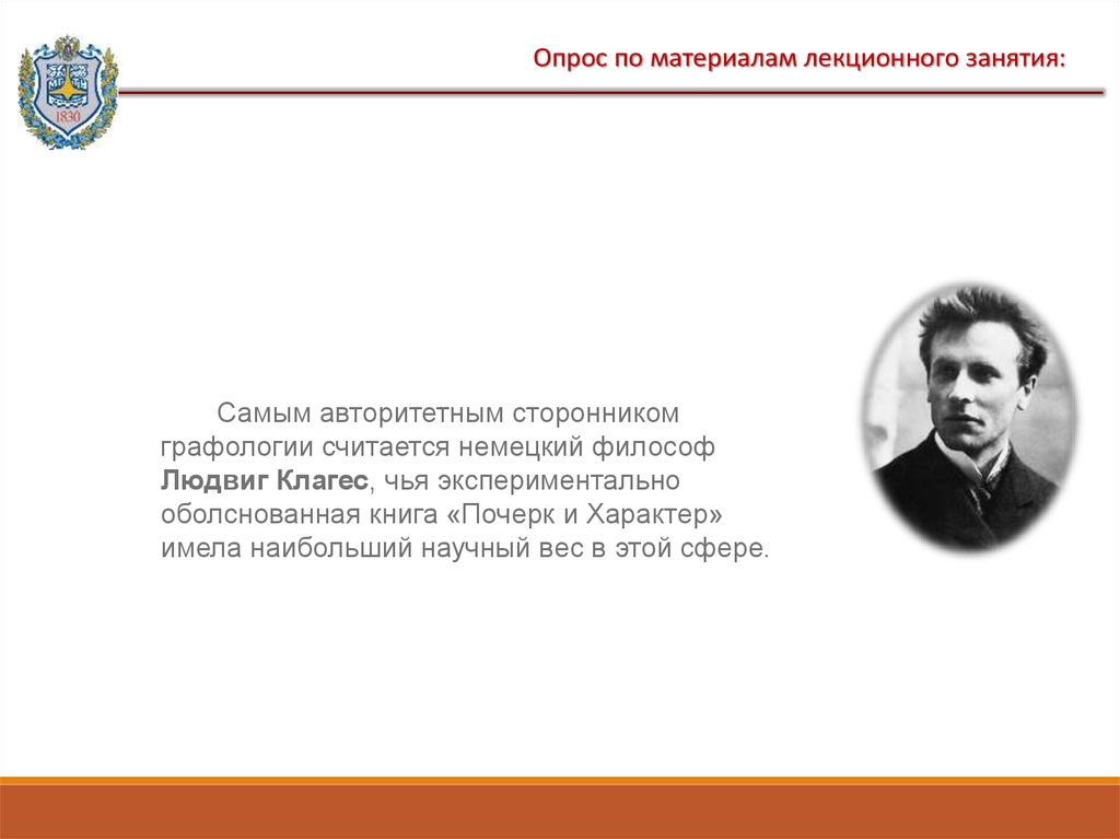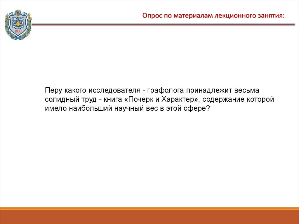 Опрос по материалам лекционного занятия:Перу какого исследователя - графолога принадлежит весьма