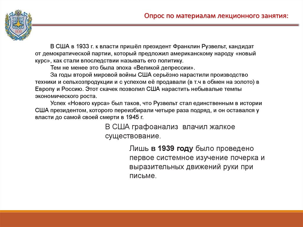 Опрос по материалам лекционного занятия:В США в 1933 г. к власти пришёл президент Франклин Рузвельт, кандидат