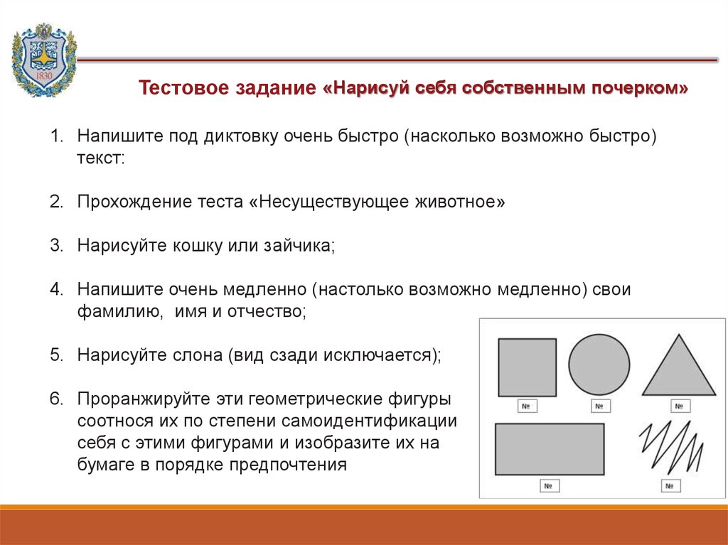 Тестовое задание «Нарисуй себя собственным почерком»Тест «Перейди дорогу»