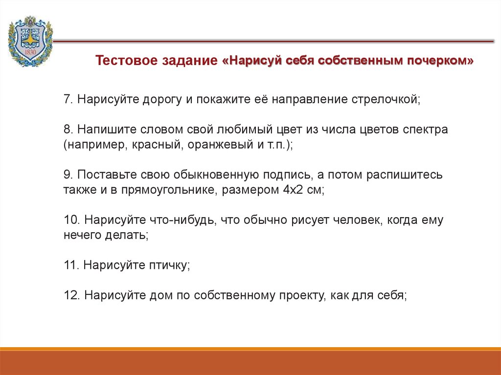 Тестовое задание «Нарисуй себя собственным почерком»7. Нарисуйте дорогу и покажите её направление стрелочкой;