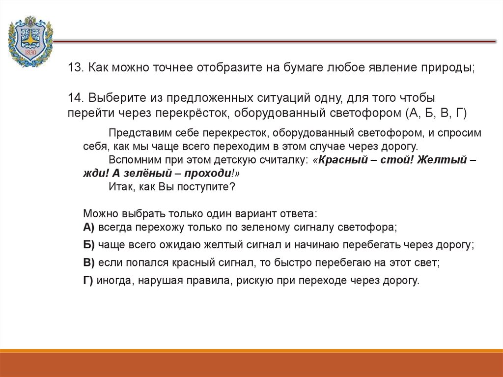 Г) иногда, нарушая правила, рискую при переходе через дорогу.