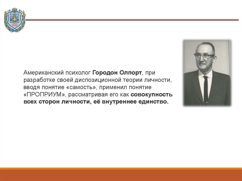 Американский психолог Городон Олпорт, приразработке своей диспозиционной теории личности,