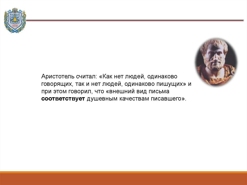 Аристотель считал: «Как нет людей, одинаковоговорящих, так и нет людей, одинаково пишущих» и