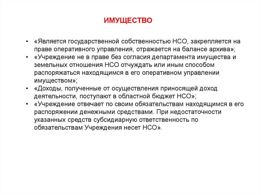 ИМУЩЕСТВО• «Является государственной собственностью НСО, закрепляется на