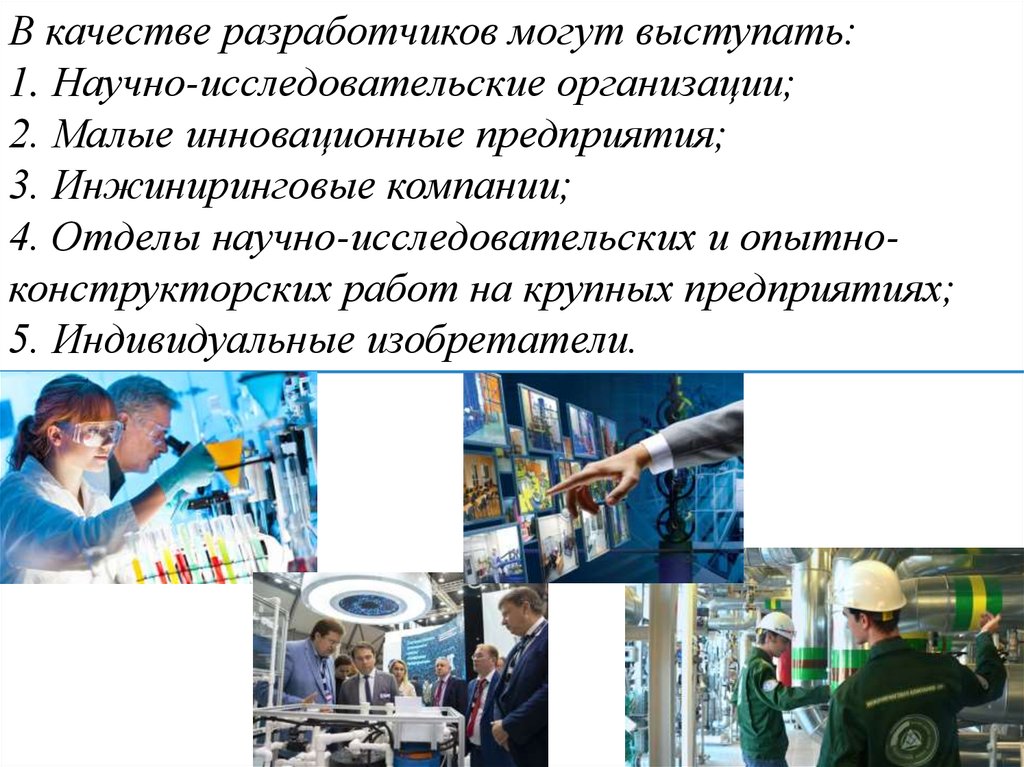 В качестве разработчиков могут выступать:1. Научно-исследовательские организации;