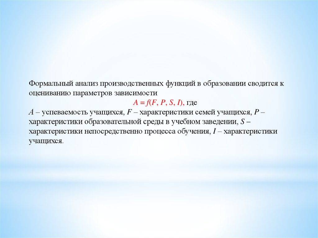 Формальный анализ производственных функций в образовании сводится коцениванию параметров зависимости