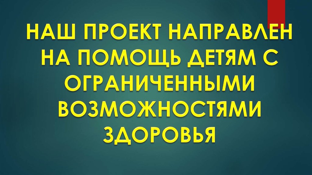 2. Цель проекта: 1. развитие добровольческой и благотворительной помощи детям и подросткам с ограниченными возможностями с целью