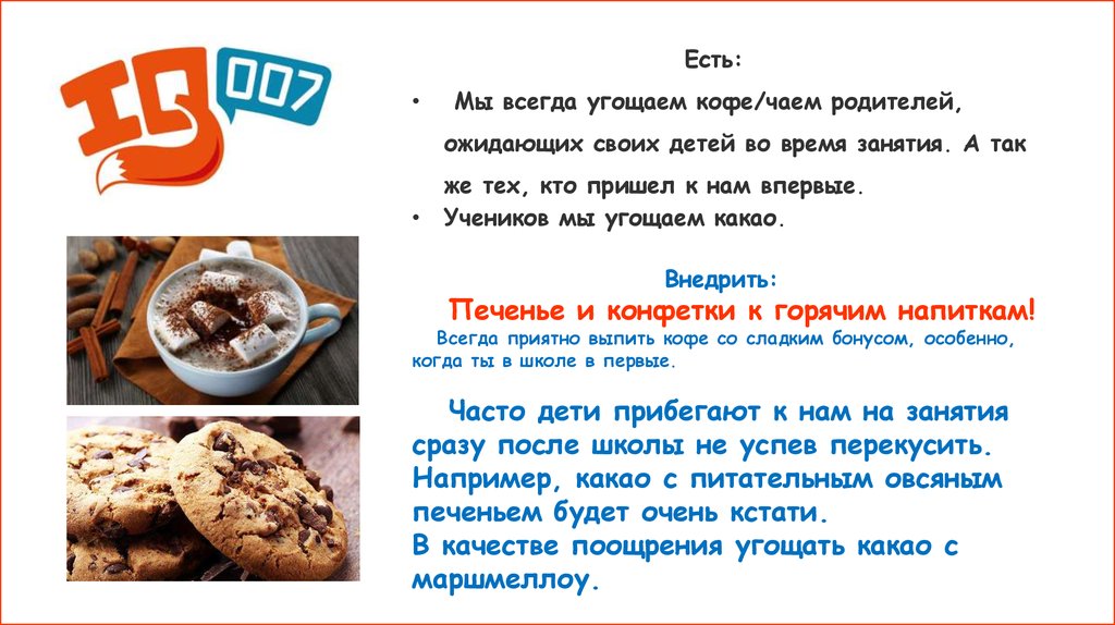 В качестве поощрения угощать какао с