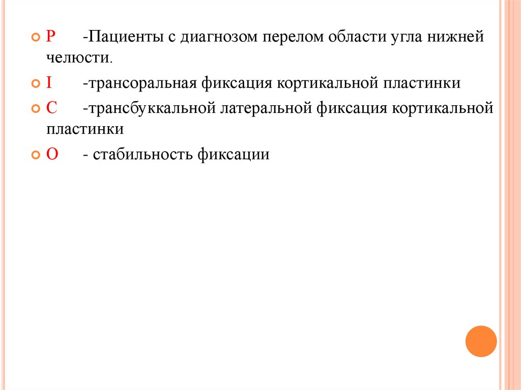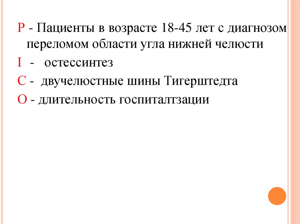 Р - Пациенты в возрасте 18-45 лет с диагнозомпереломом области угла нижней челюсти