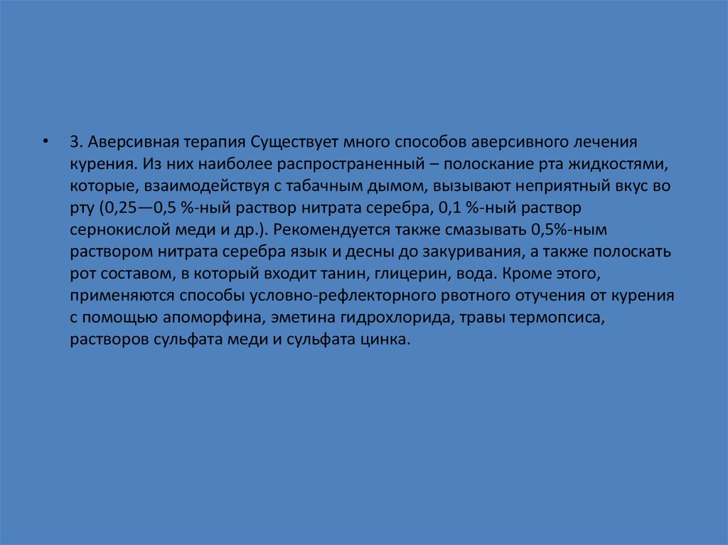 3. Аверсивная терапия Существует много способов аверсивного лечения