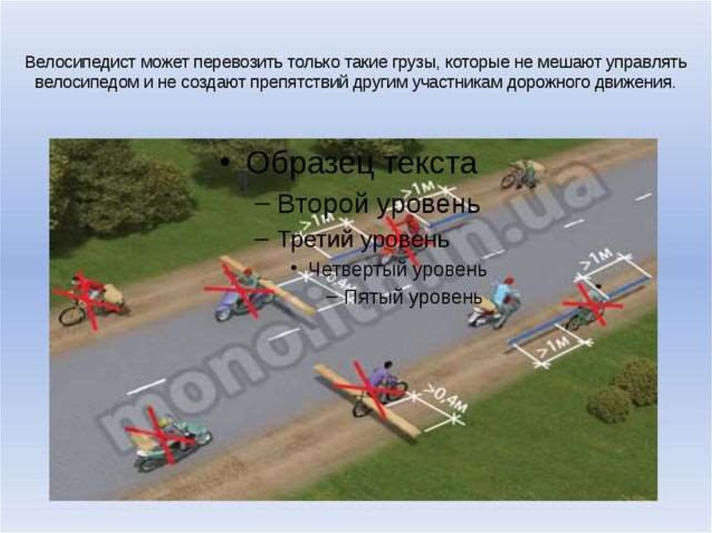 к) возить предметы, которые могут помешать управлению велосипедом или
